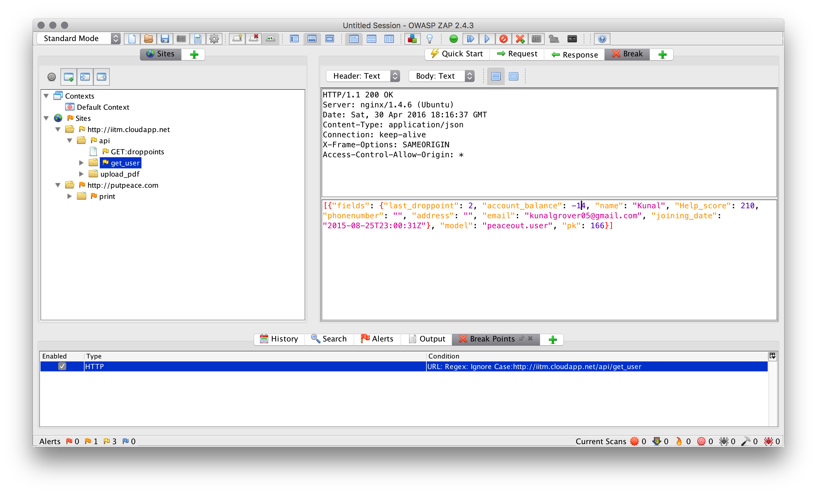 How to modify response data? Simple, right click on the request(get_user) and click on Break. This allows us to set a breakpoint whenever the request hits or a response is received. The first image shows the request, and the second one shows the response. I changed the response to a higher number than the print amount, and it worked.